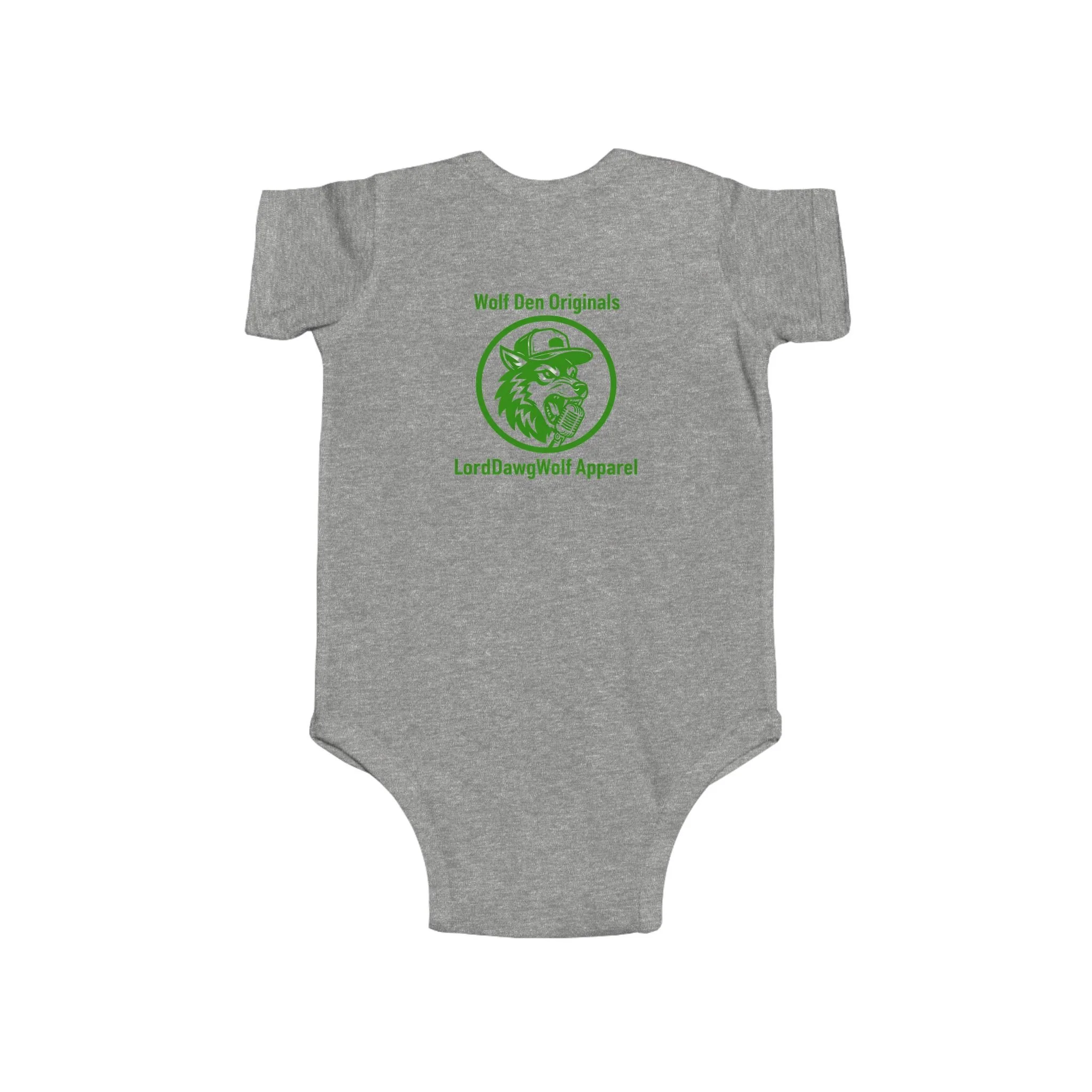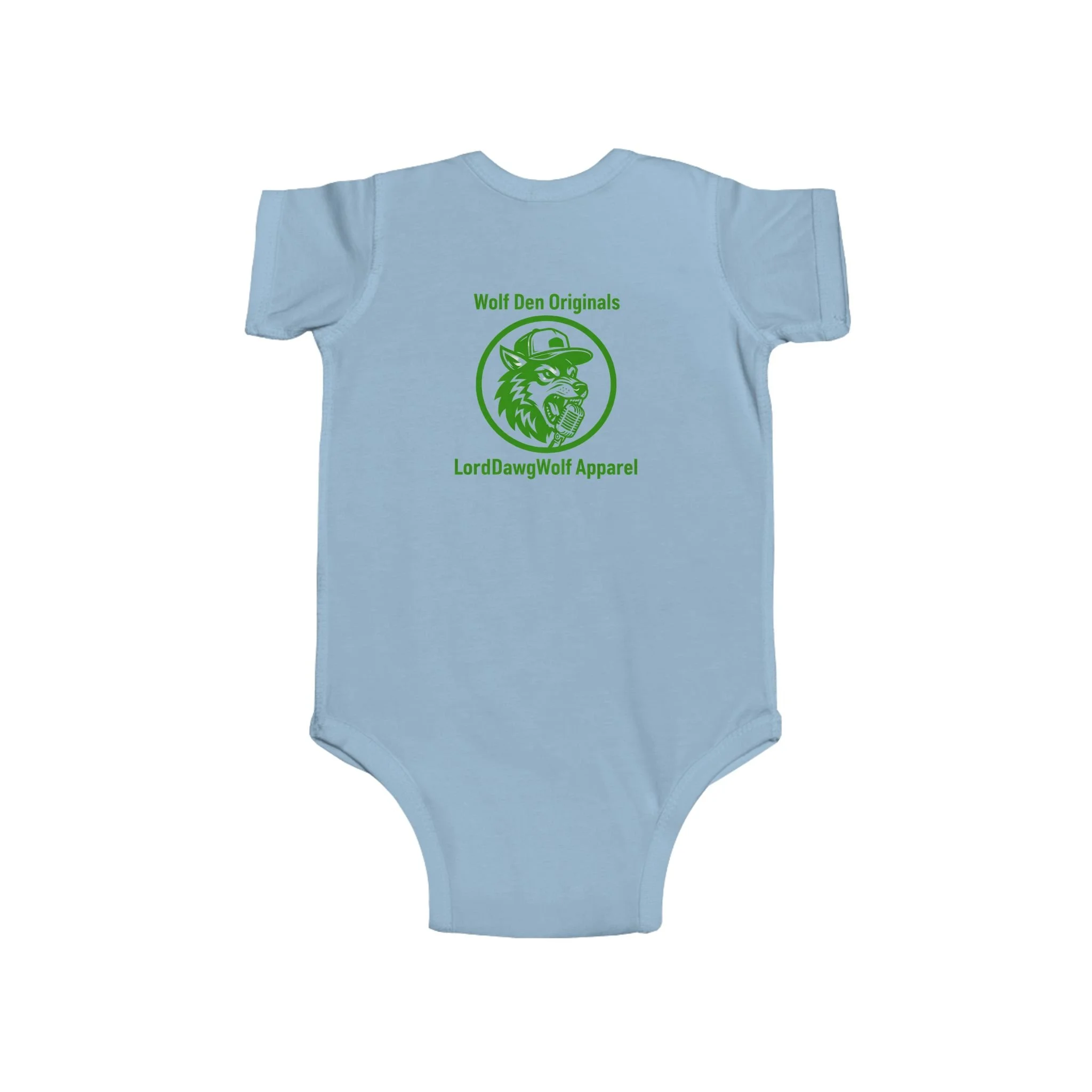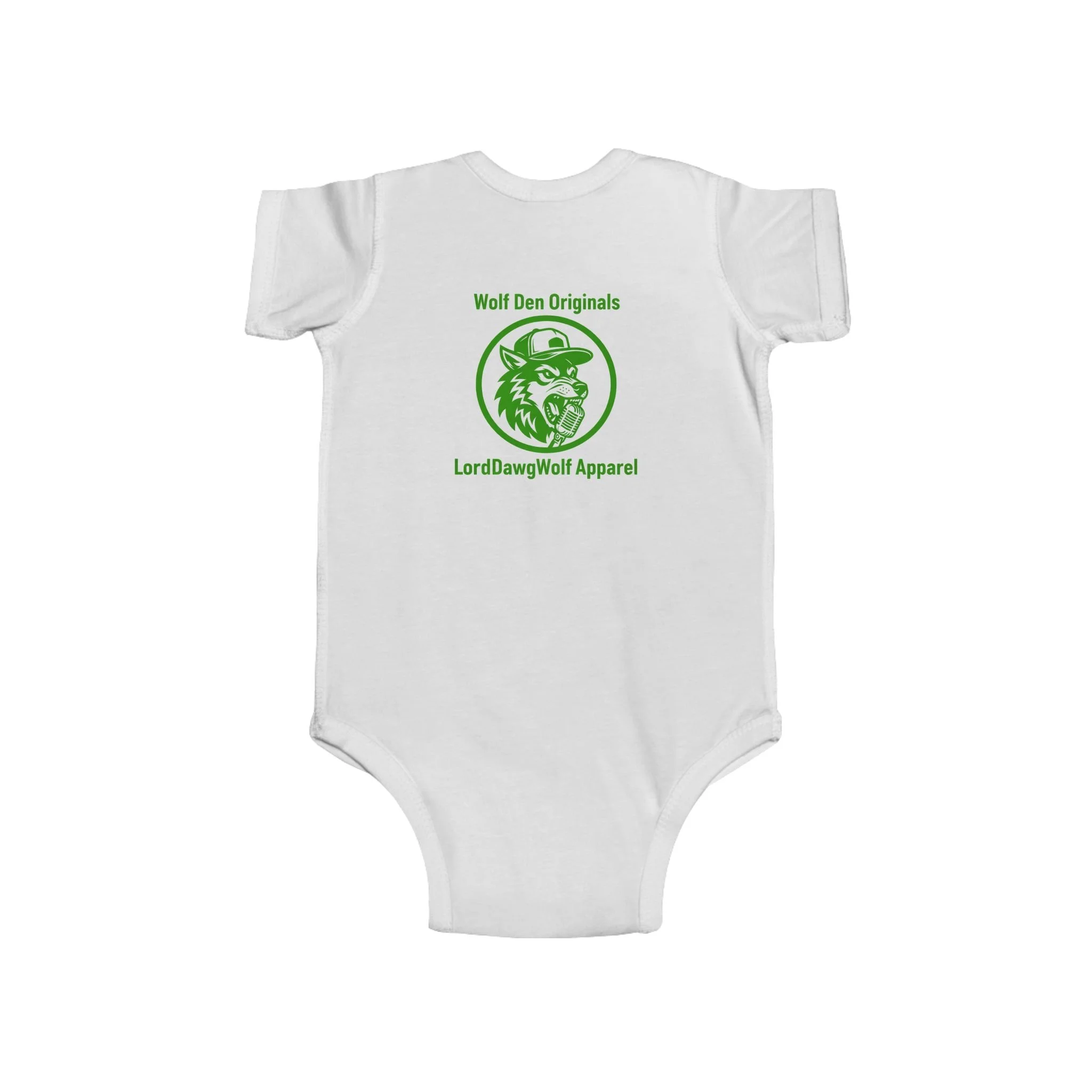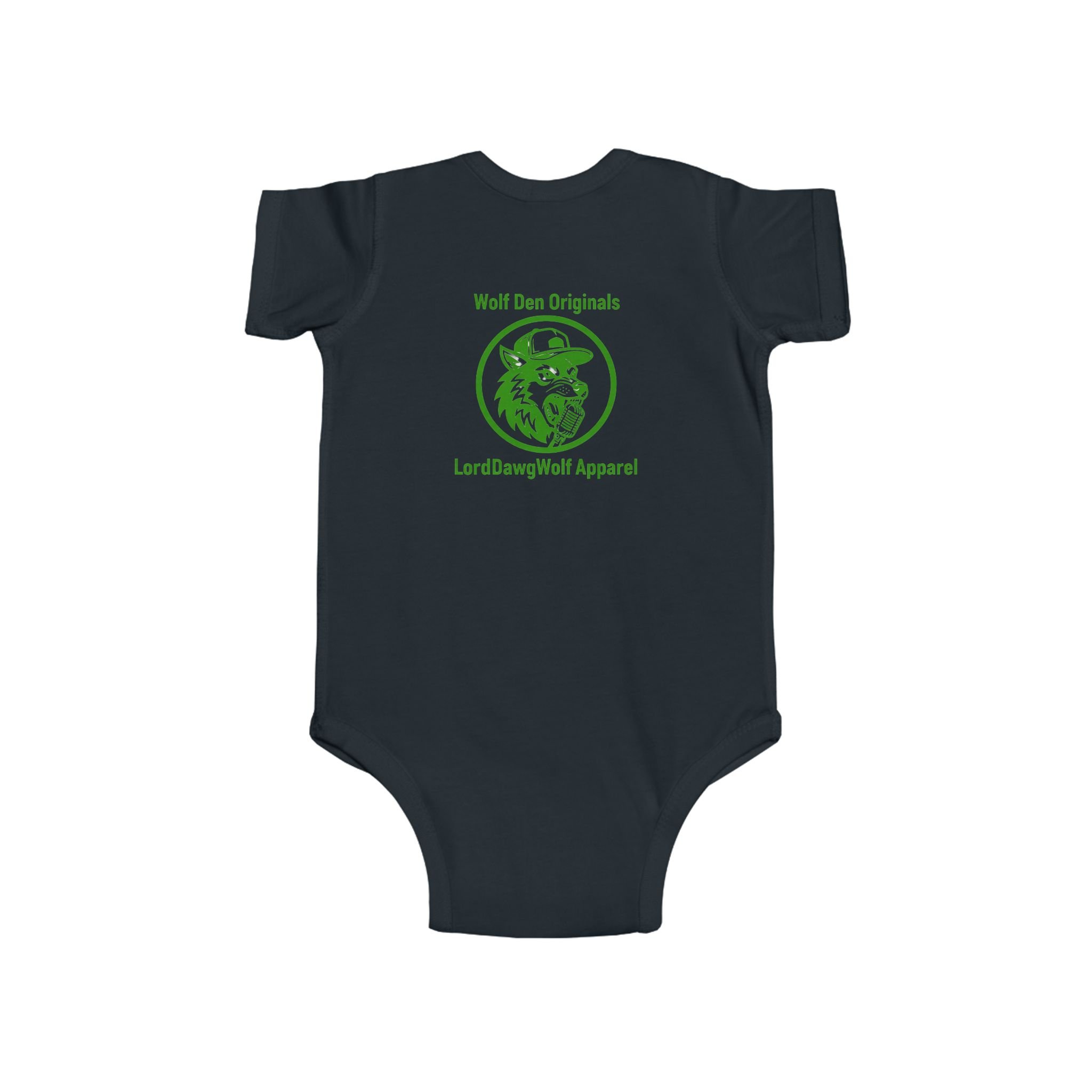 Soft, breathable infant bodysuit with a cheeky, green-ink design that channels playful rebellion for little ones. Lightweight combed ringspun cotton feels gentle on newborn skin while ribbed binding at the neckline allows easy movement. Reinforced side seams help the shape hold wash after wash. Snaps at the crotch make diaper changes quick and fuss-free. The design—bold green lettering and a wolf emblem—adds a quirky, irreverent touch that fits casual family days, photo moments, and everyday wear.