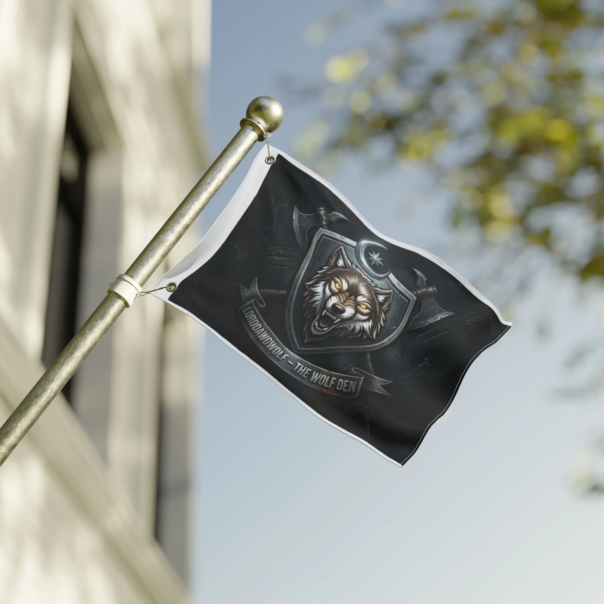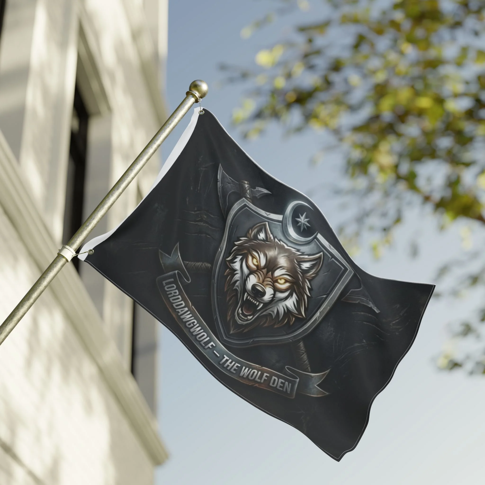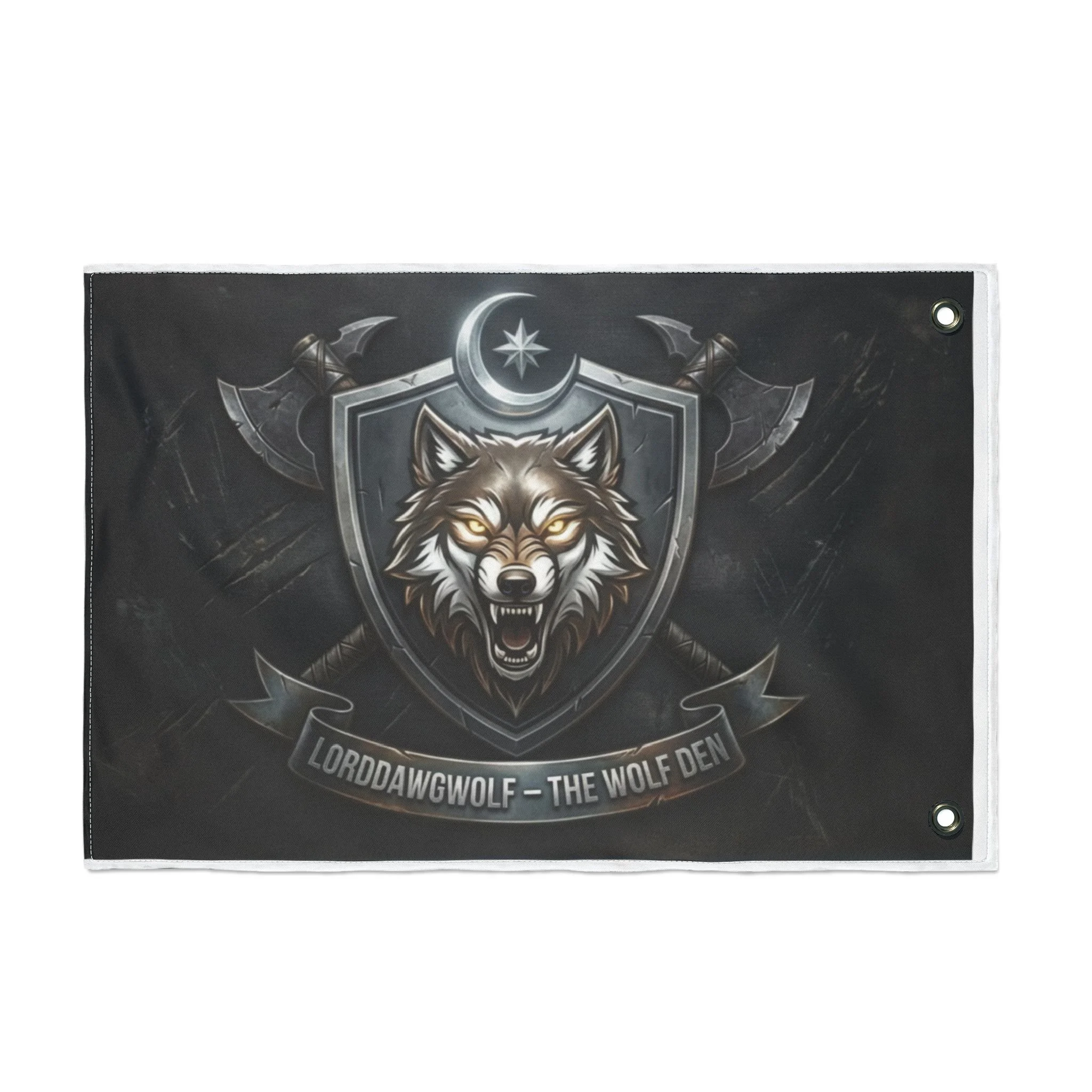 Wolf Crest Double-Sided Flag — 'LORDDAWWGOLF — THE WOLF DEN' Emblem