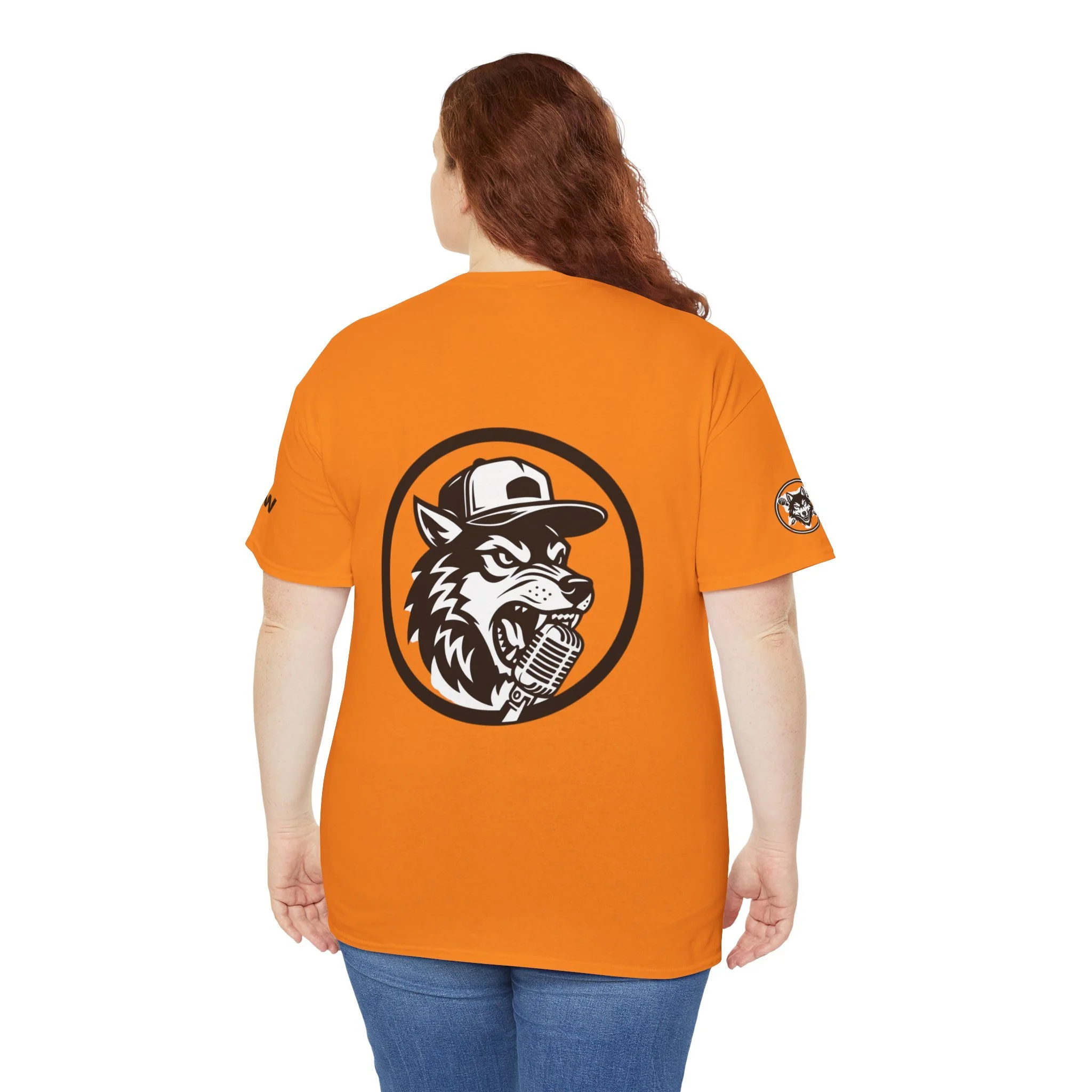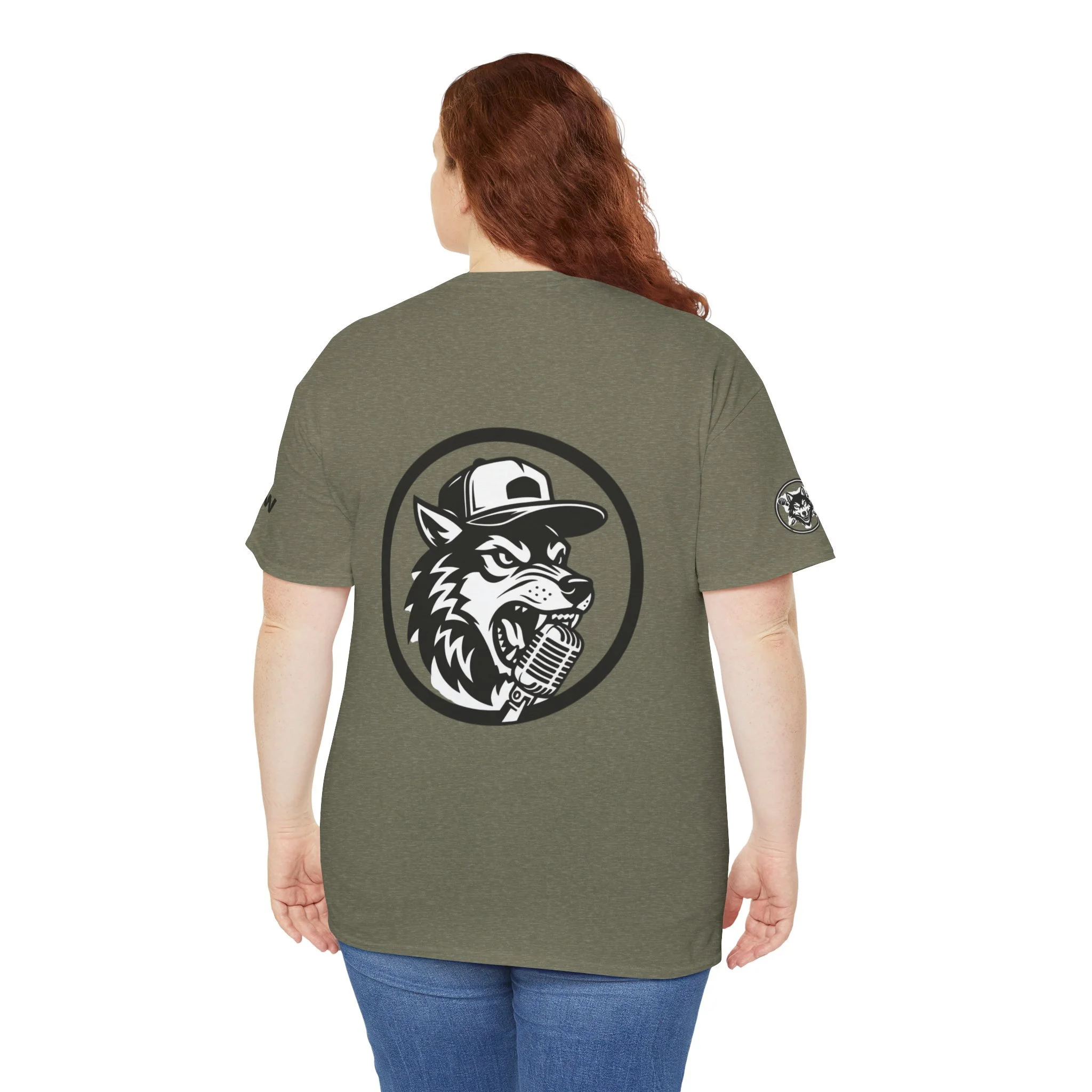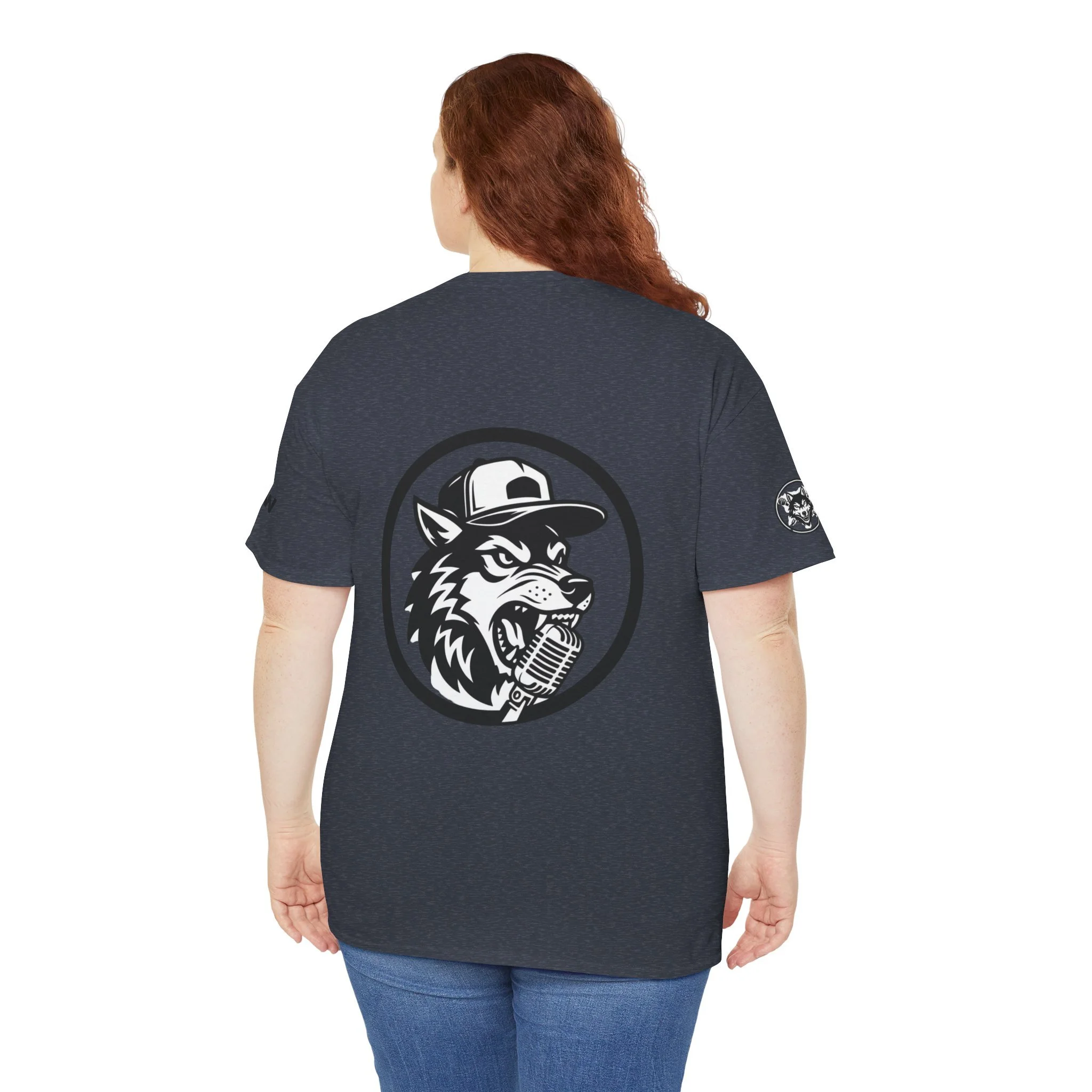 This classic crew tee carries a confident, streetwise spirit — a clean white canvas stamped with a bold wolf logo that feels equal parts vintage radio host and backyard MC. The shirt sits relaxed across the shoulders and falls casually at the waist, so it layers easily under a jacket or stands on its own. The textured, slightly flecked Natural option and sturdy midweight fabric give it presence without weighing you down. Wear it to open-mic nights, late-night drives, or when you want a simple piece that says you show up, speak up, and own the room.